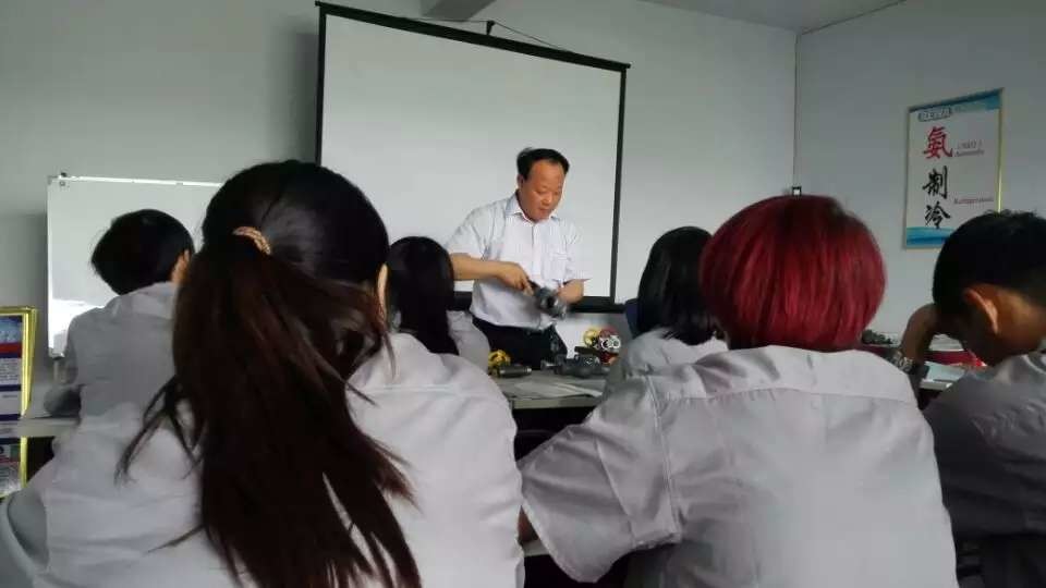 為了加強(qiáng)我們的專業(yè)制冷知識(shí),瑞華制冷張總特邀制冷系統(tǒng)專家王教授,利用周日休息時(shí)間前來為我們講解氨制冷原理知識(shí)。從最基本的冷庫(kù)分類、結(jié)構(gòu)分型冷庫(kù)的優(yōu)點(diǎn)及缺點(diǎn),以及土建冷庫(kù)的各種參數(shù)、制冷原理、制冷四大部件的具體作用及應(yīng)用等等。其中冷庫(kù)按結(jié)構(gòu)分類為土建結(jié)構(gòu)和裝配型,土建主要優(yōu)點(diǎn)是保溫效果好,溫度較為穩(wěn)定,當(dāng)然不足之外是施工周期長(zhǎng)。但從長(zhǎng)遠(yuǎn)來看,土建冷庫(kù)使用周期也較為長(zhǎng)遠(yuǎn),30年,50年的使用都不會(huì)影響冷庫(kù)的制冷效果。裝配型冷庫(kù)的最大優(yōu)點(diǎn)就是施工周期短,但同理保溫效果略差,而且使用周期沒有土建的年限久。當(dāng)然,這可根據(jù)企業(yè)的長(zhǎng)遠(yuǎn)打算,適當(dāng)?shù)倪x擇結(jié)構(gòu)類型。