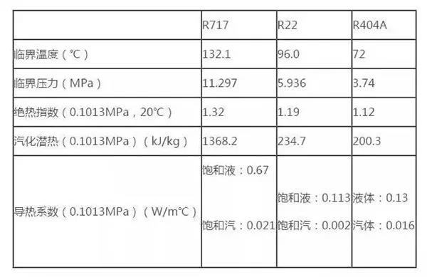1、氨制冷劑(R717)和氟制冷劑(R22和R404A)的性質(zhì)對比
